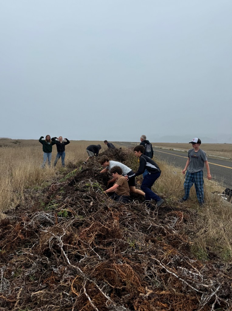 In this act of community service, the middle school students worked with state parks rangers to remove the invasive plants not just to prevent the erosion but also to make more room for local plants to make their homes on our Mendocino Headlands.