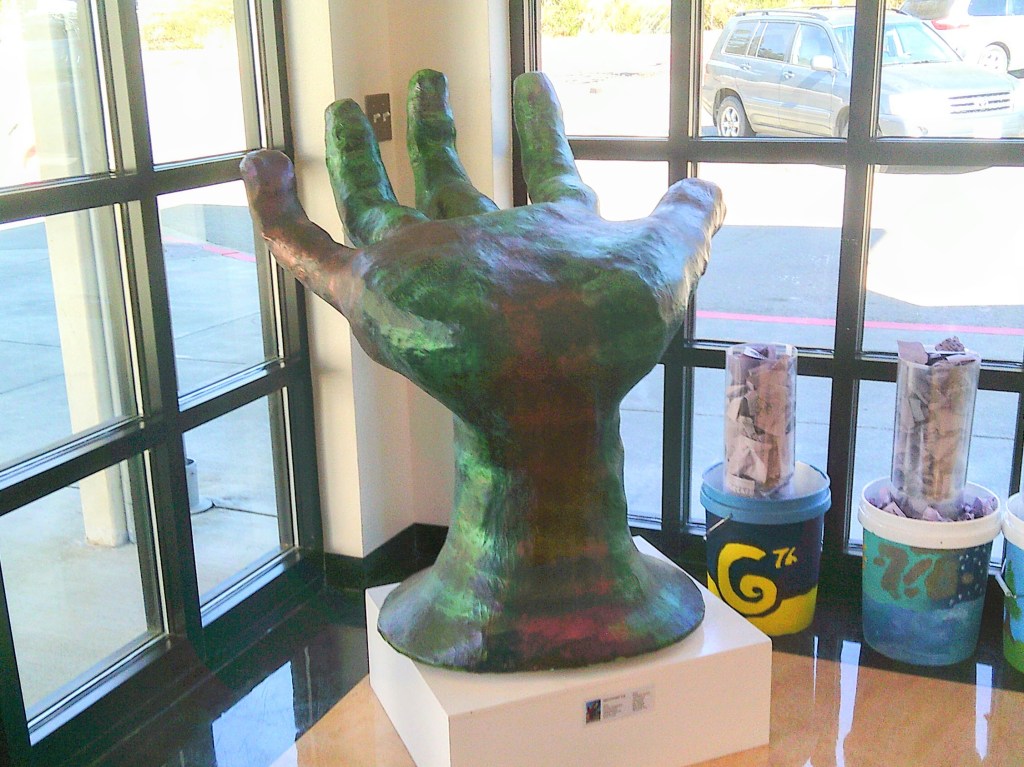 Teams of students had the choice to make what they wanted, then make clay models and paper mache pieces. The hand was one of these pieces. According to Mark, the students spent a lot of time making and designing it. It apparently took weeks of time to just make the piece.