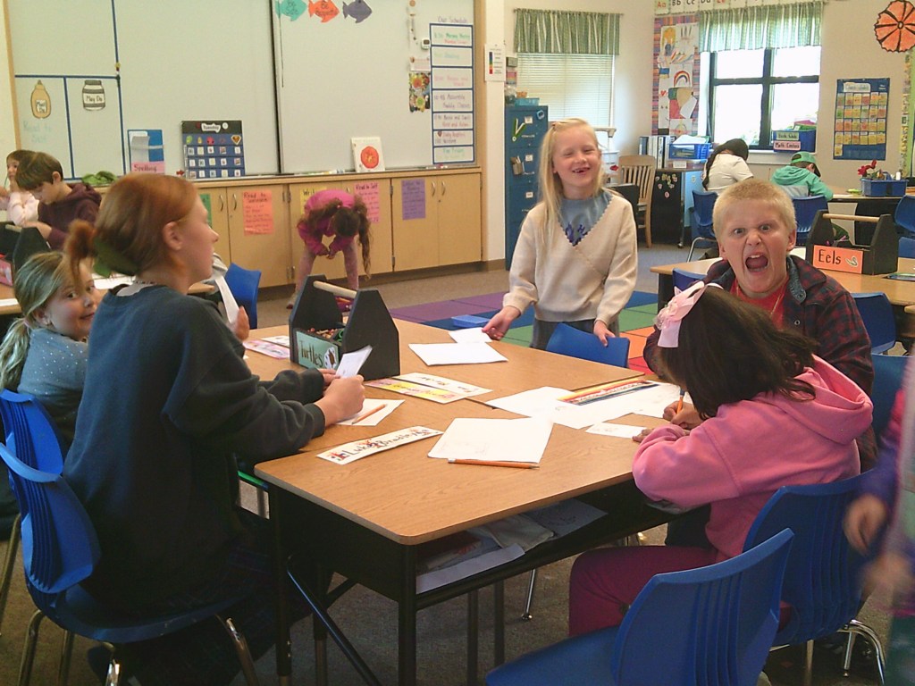 Ms. Frederick, the seventh and eighth grade ELA teacher, and her class went to Ms. Jessica’s kindergarten class and helped design our tickets that will be handed out at school. We all got paired up into groups of four and then started drawing. Before we started this, we went around in a circle telling everyone our names. We held hands with the littles, and got split up randomly. We took turns drawing the tickets. We think they are going to be made into real tickets but I’m not sure.